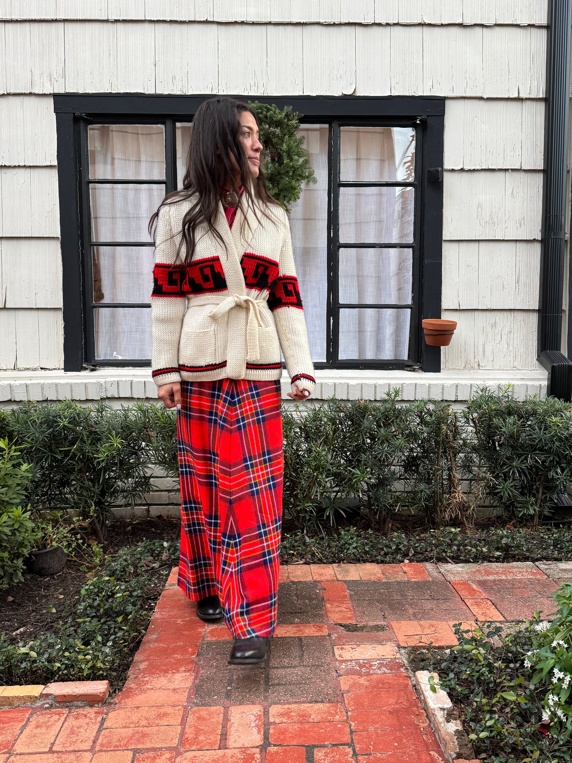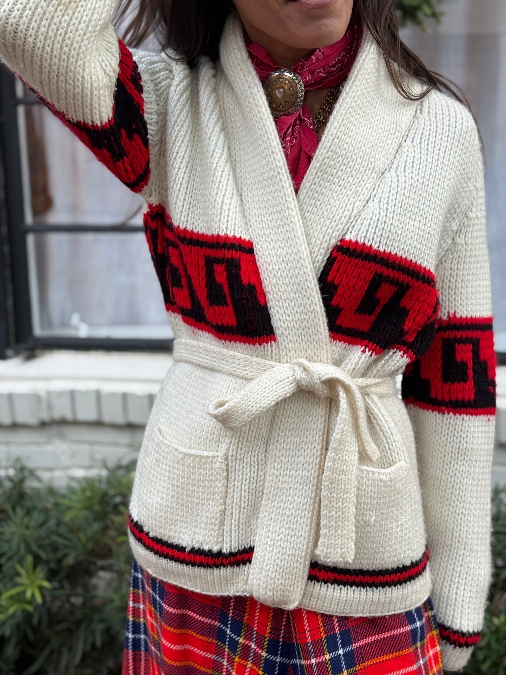 Incredible 70s robe style sweater with original tie. Fits sizes XS-M