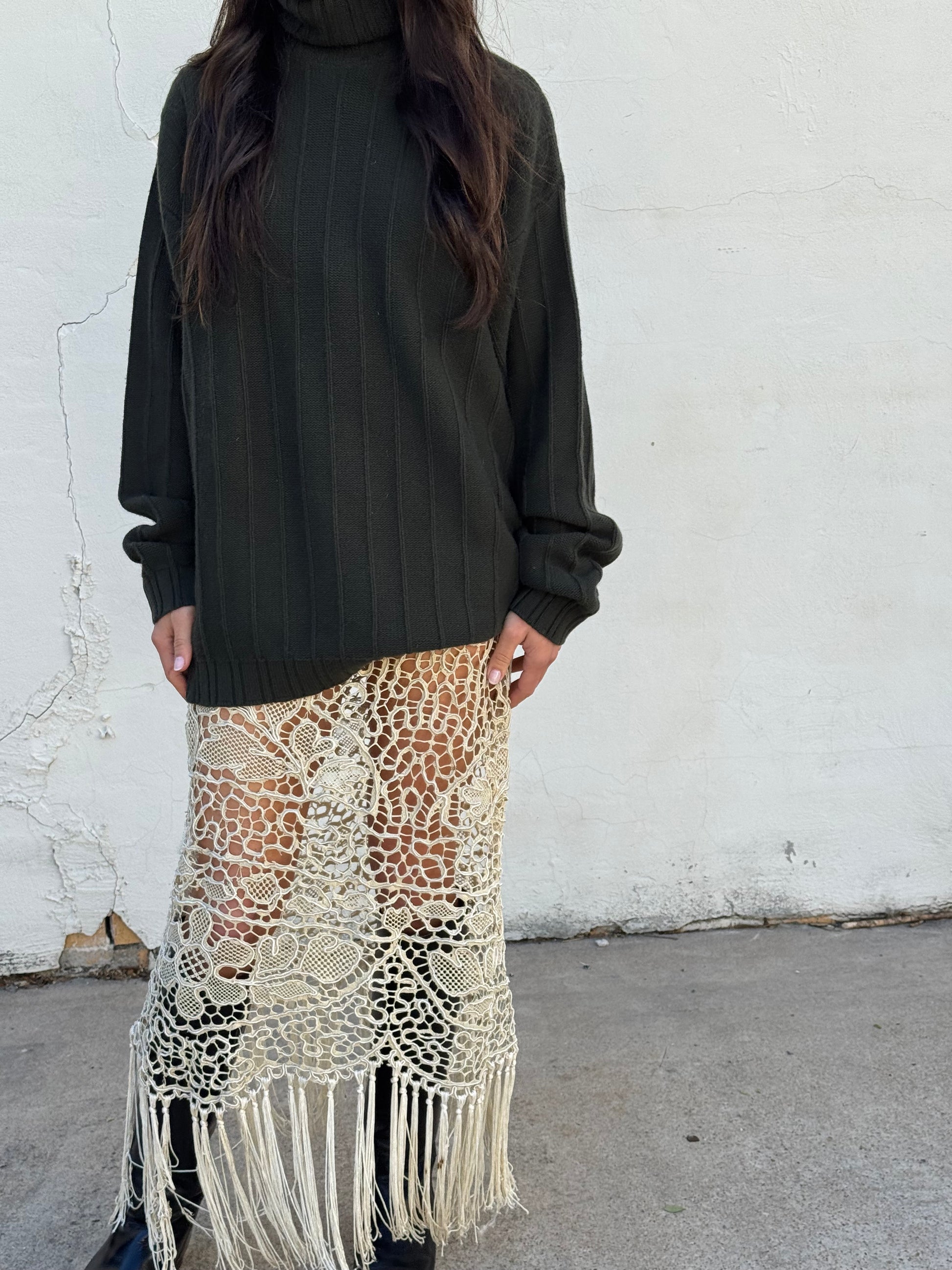Maxi skirt reworked from an antique silk fringe tablecloth size XS/S