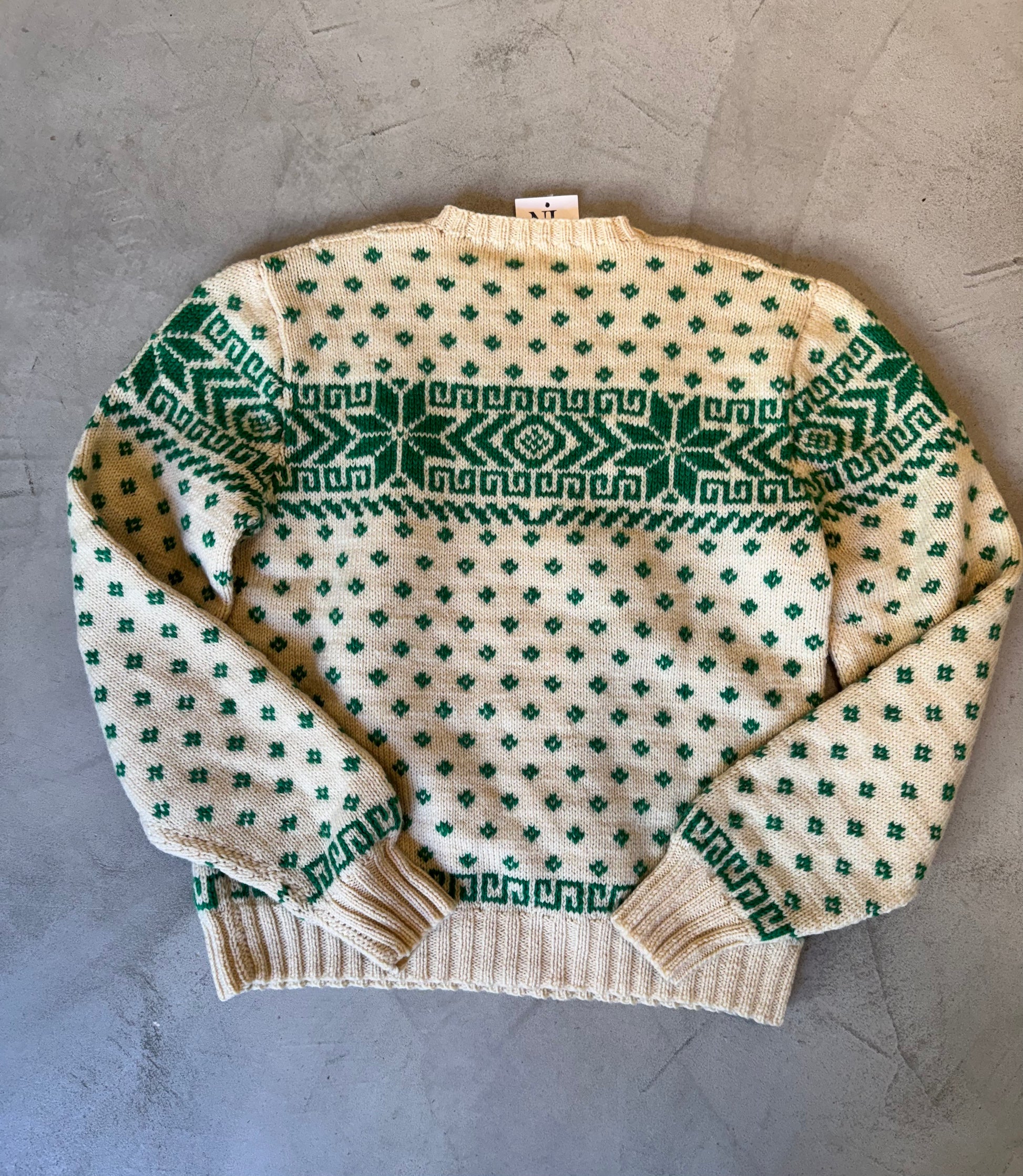 Fair Isle Green/Cream Wool Sweater