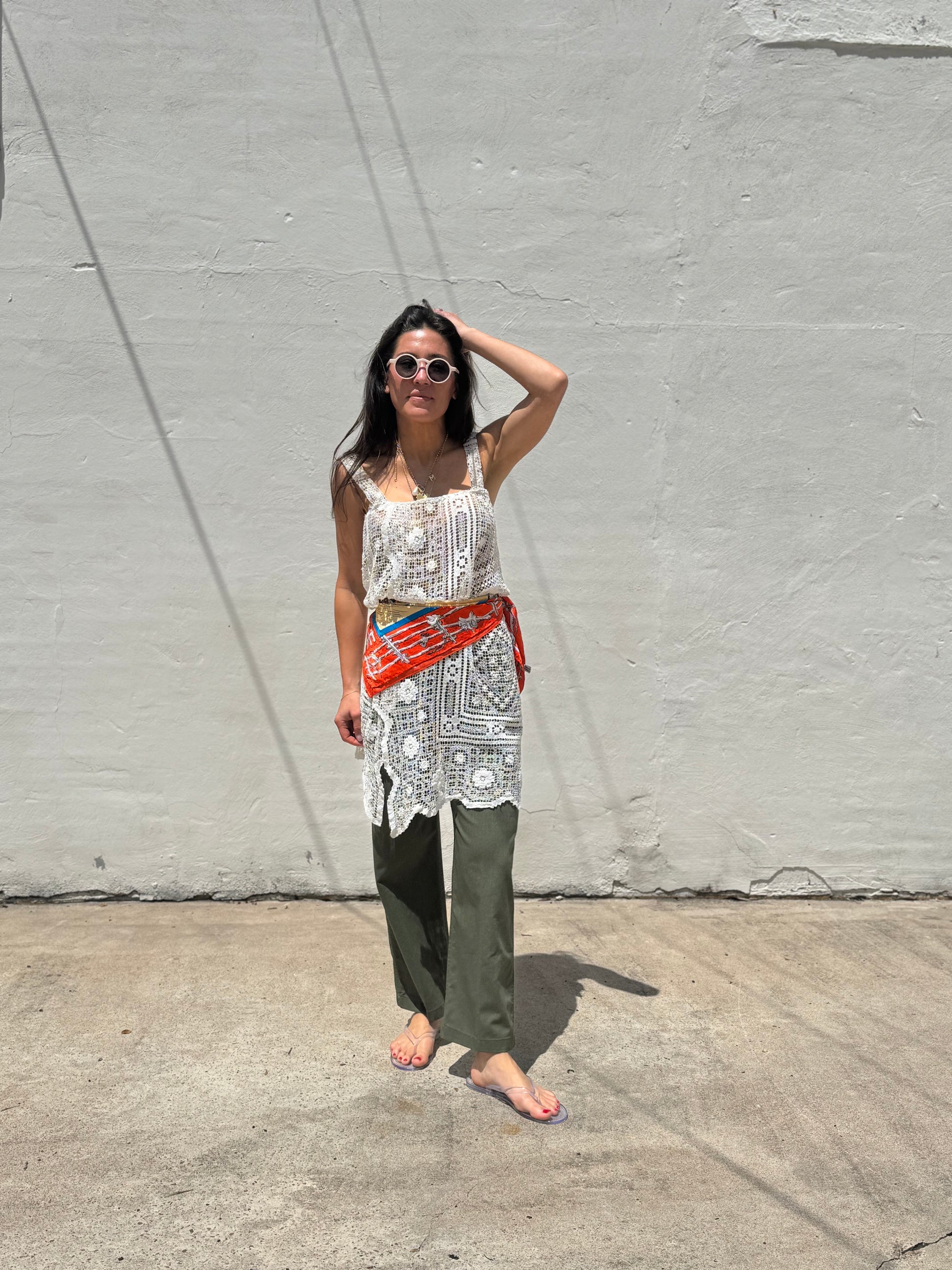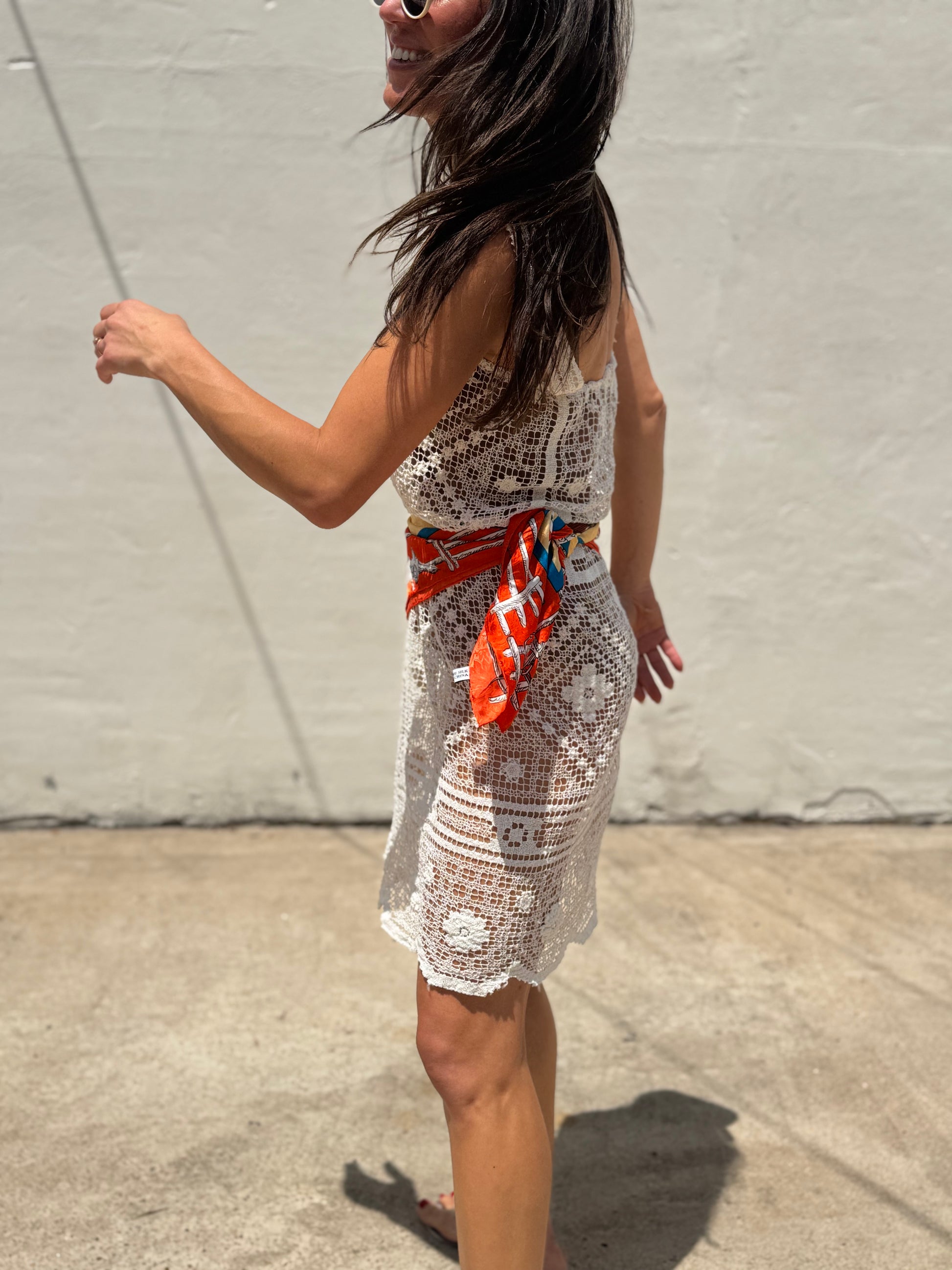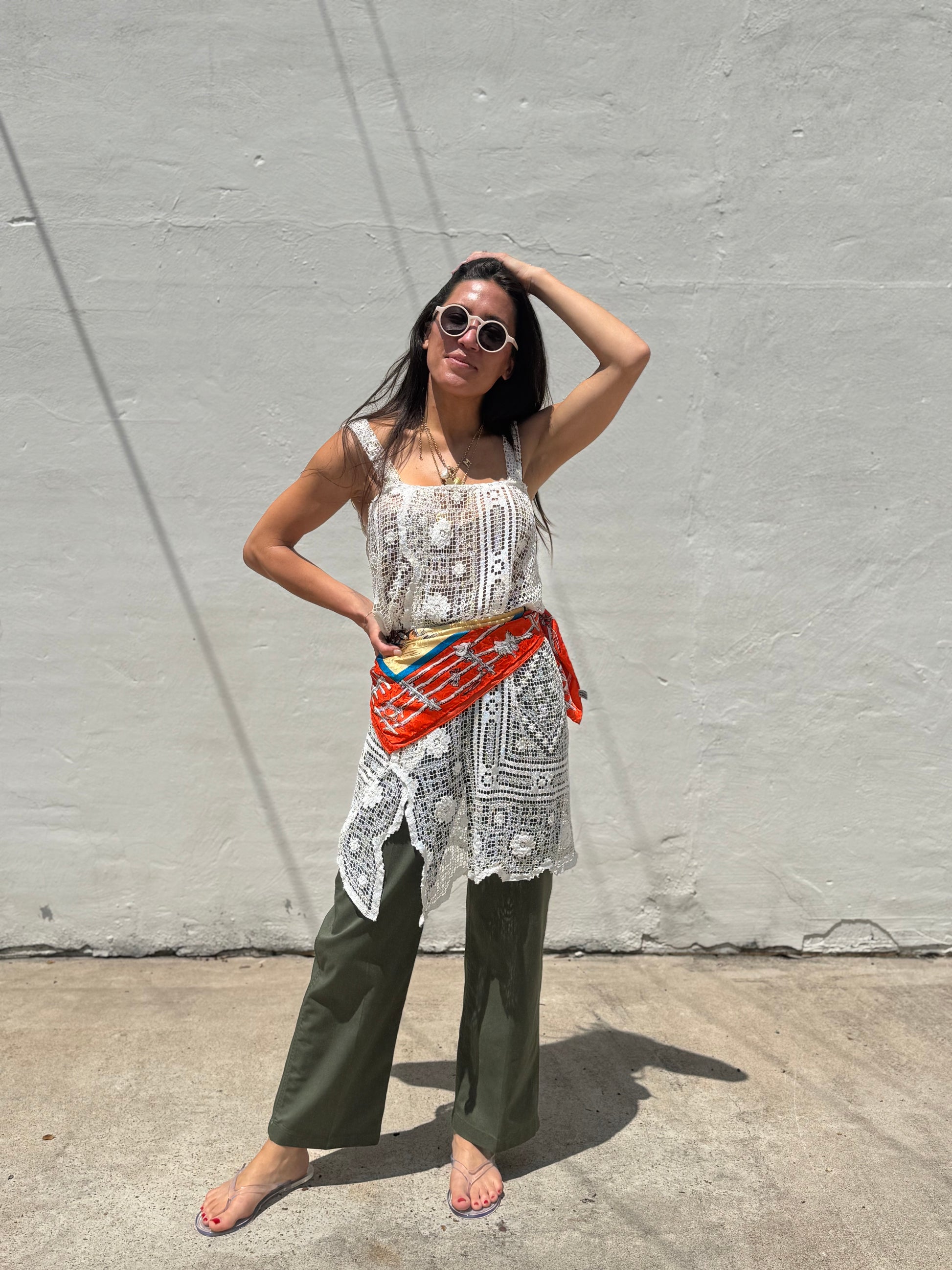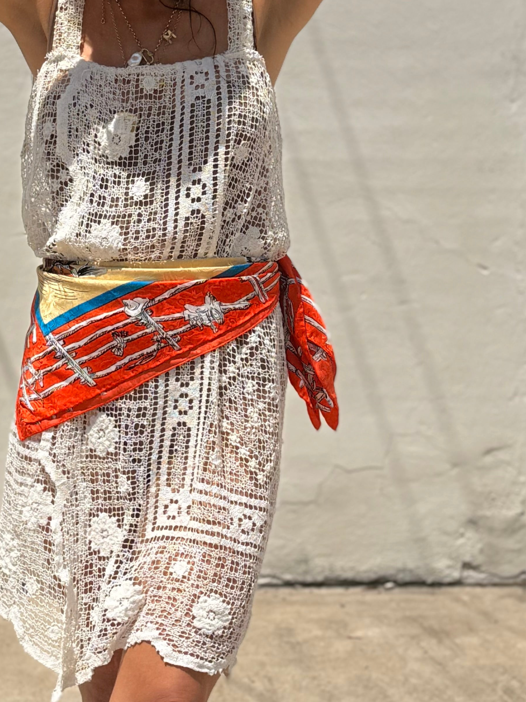 Gorgeous lace dress reworked from an antique tablecloth. Fits sizes S-L