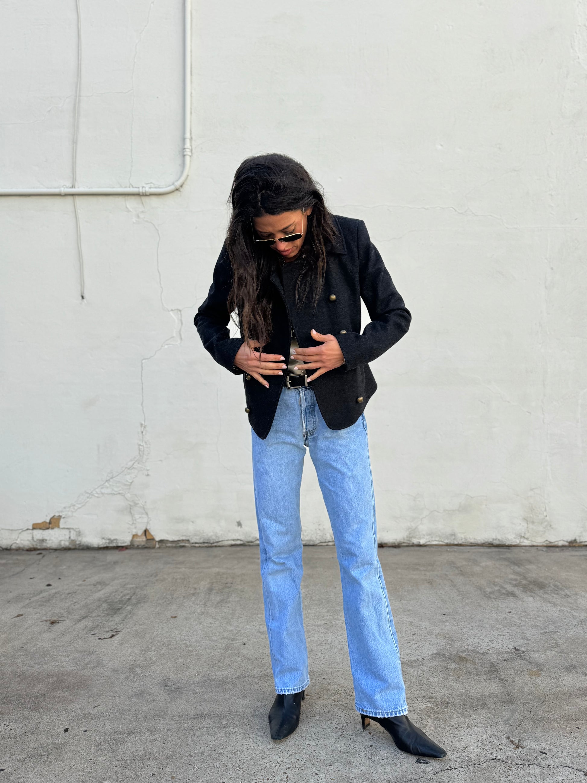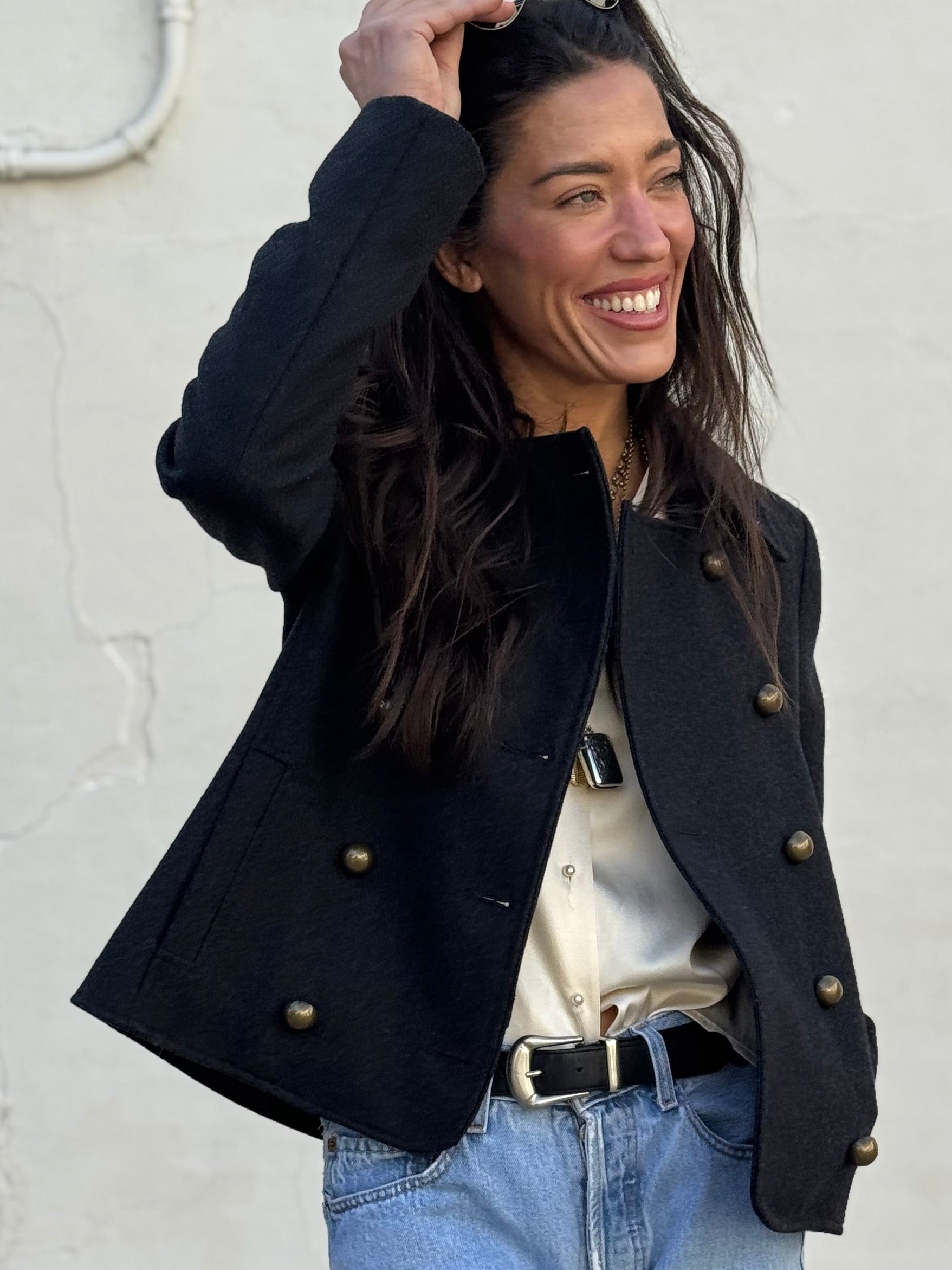DKNY cropped wool military coat with brass buttons. Size 4.