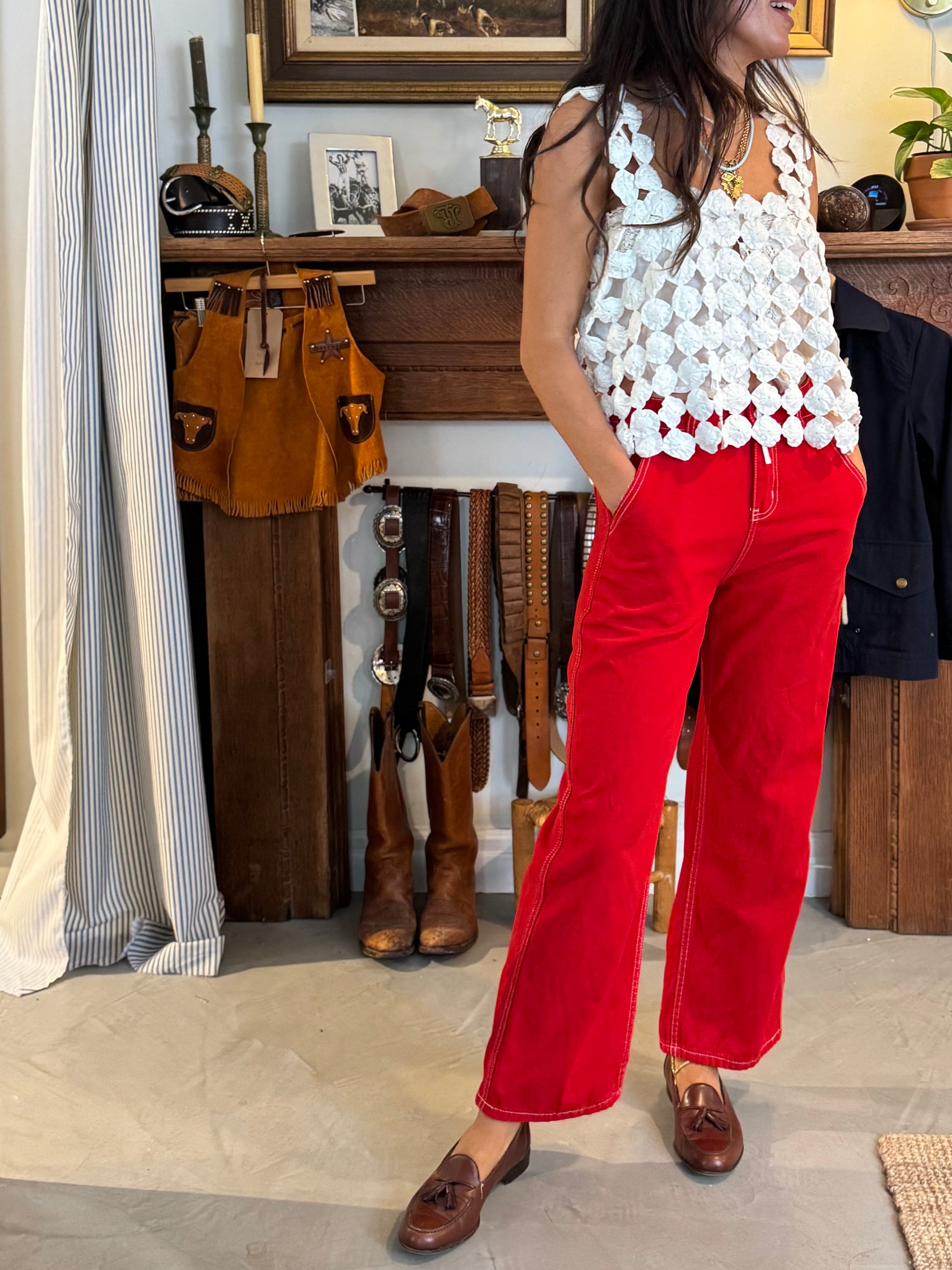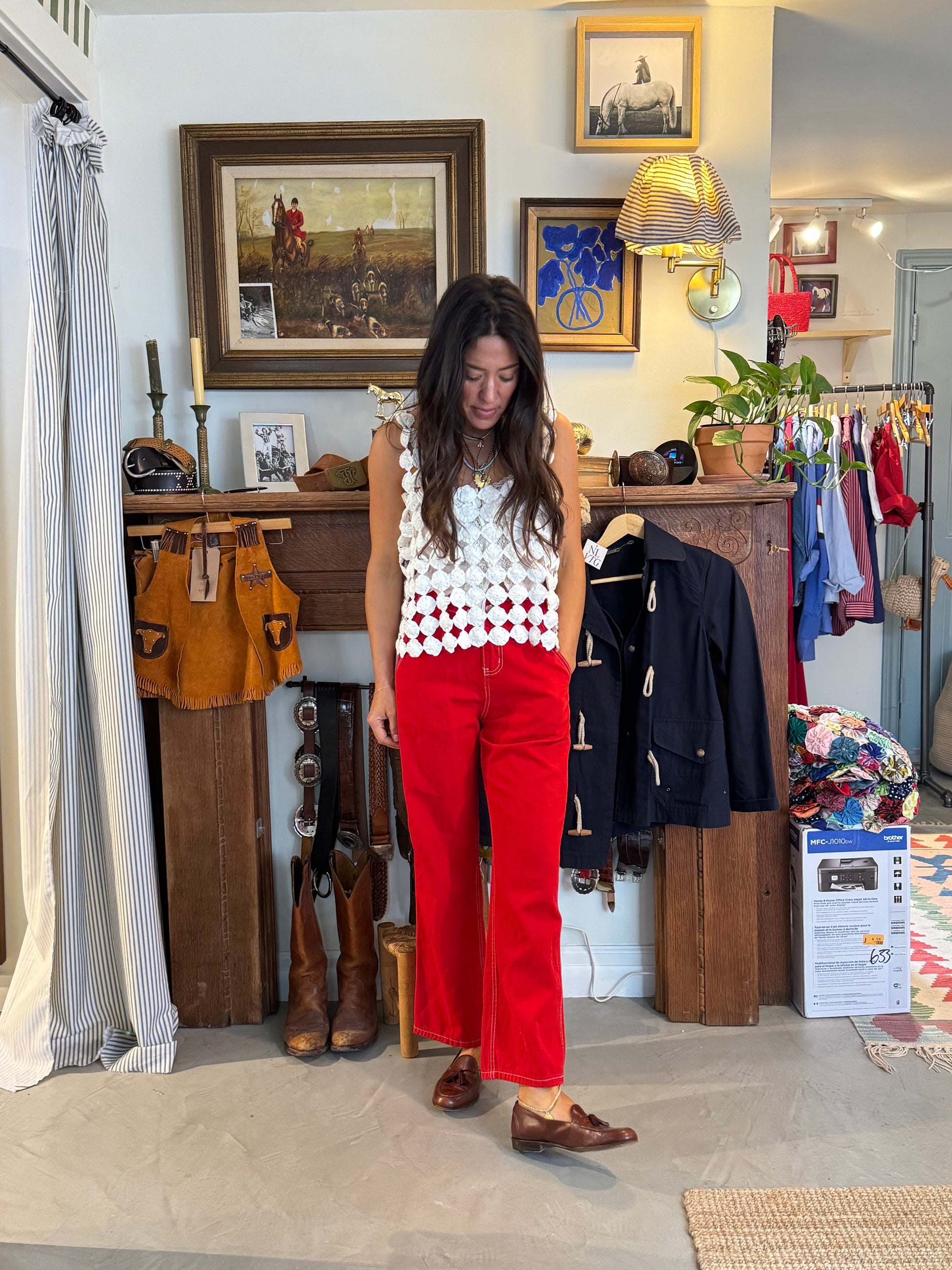 Tank made from antique 1940s yo-yo quilt in white. Loose fit sizes S-L