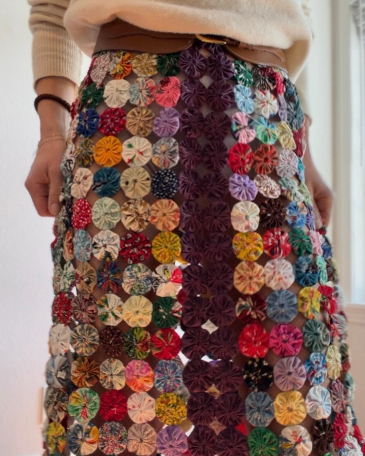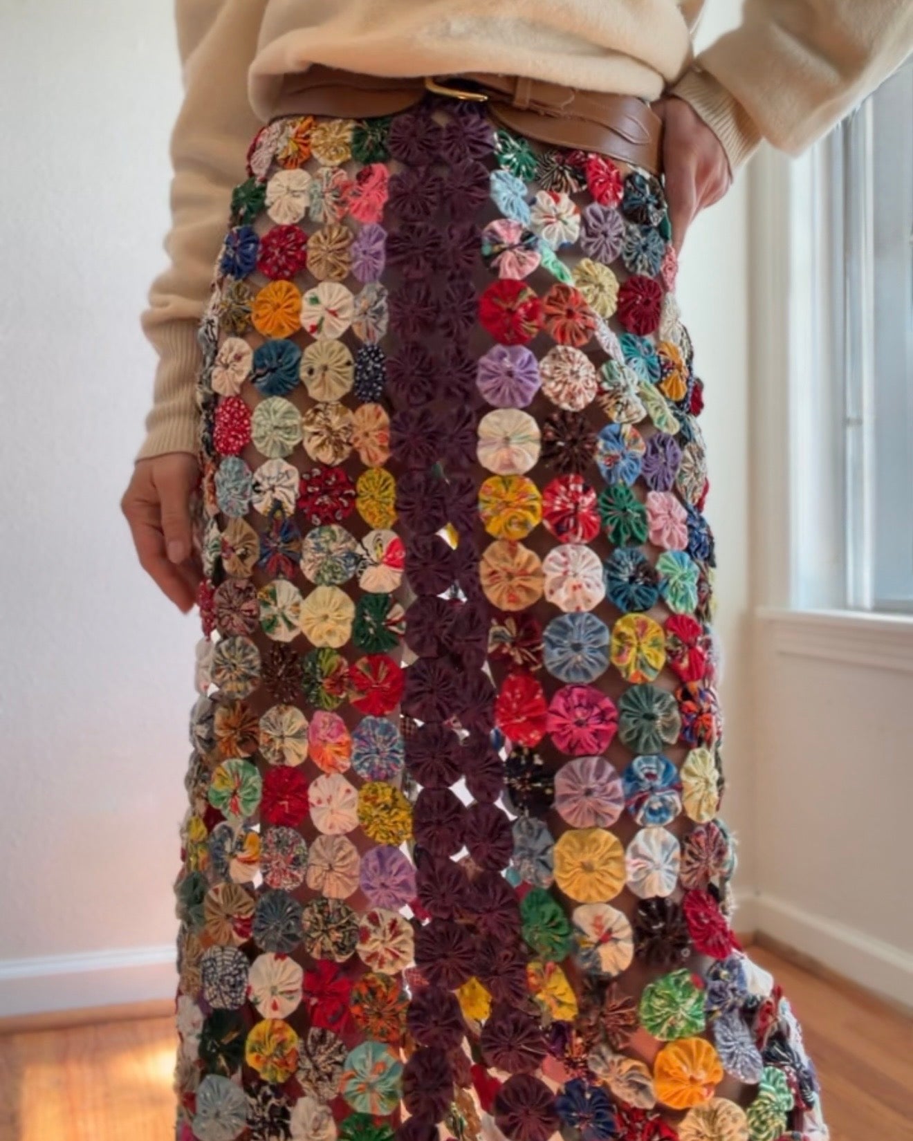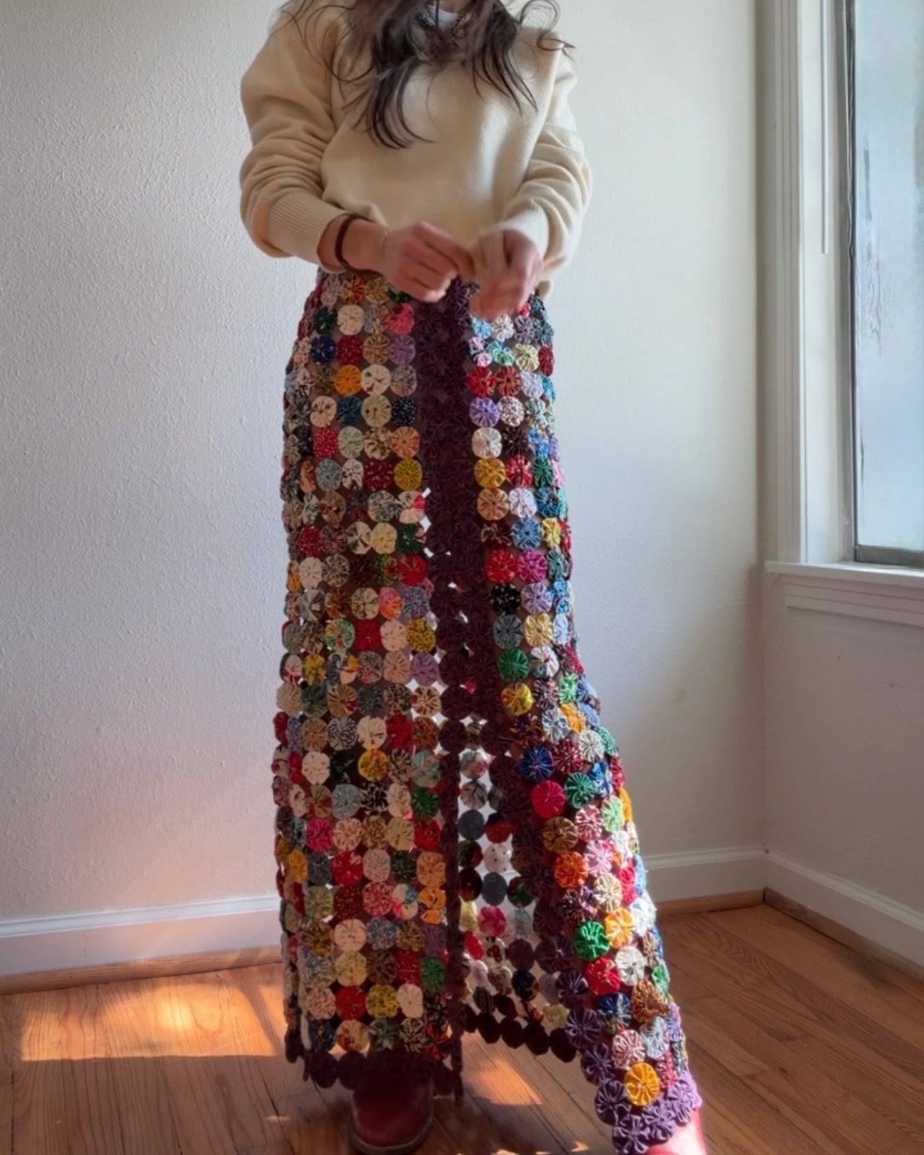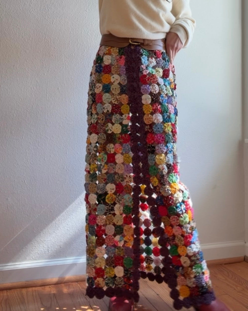 Yoyo maxi skirt with deep plum trim detail. Size L